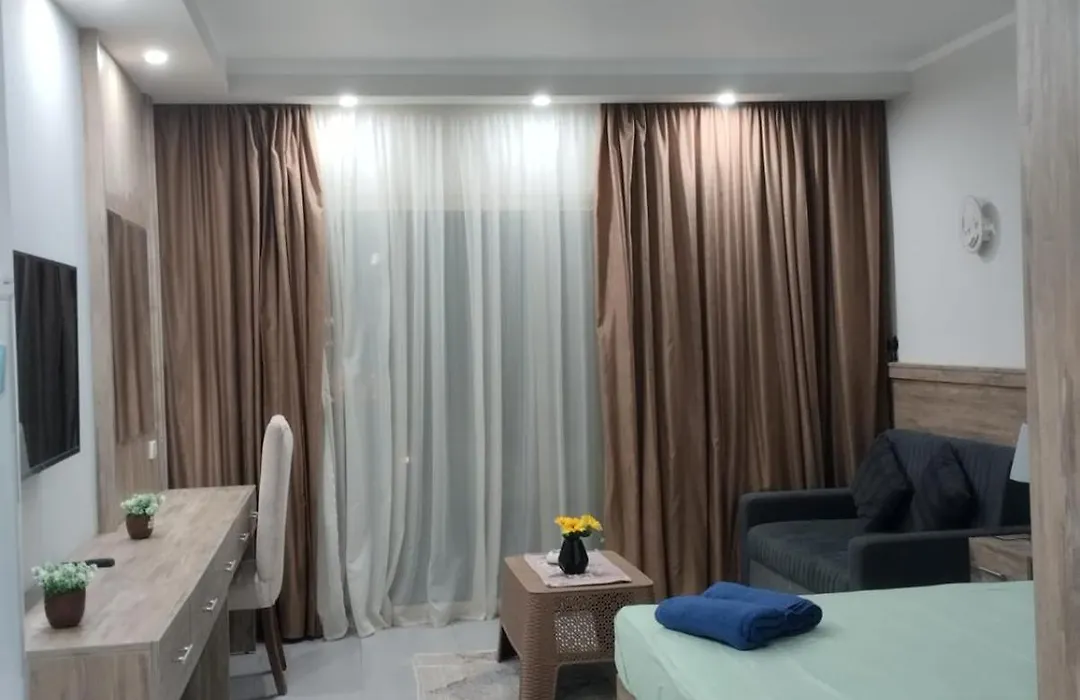 The hotel offers rooms with a balcony featuring an air conditioner, along with a flat-screen TV with satellite channels. The rooms also have an electric kettle, a fridge, and a kitchenware. Bathroom essentials include a bidet, a walk-in shower, and a separate toilet as well as hair dryers and bath sheets for guests' extra comfort.